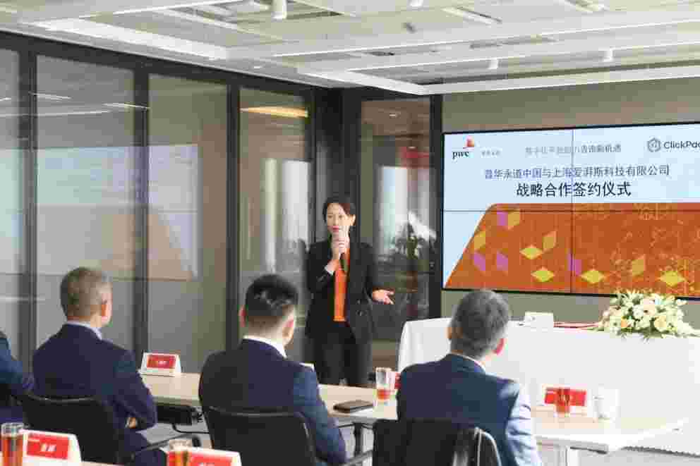普华永道中国风险及控制服务数字化鉴证和分析服务主管合伙人吕麟晖与小微钱包首席产品官马俊代表双方签订战略合作协议,,,,,,普华永道中国上海主管合伙人黄佳与小微钱包创始人、、、、、、CEO胡柏见证战略合作协议签订过程。。。。。。。。。。普华永道中国创智中心合伙人林榕作为项目总负责人主持并见证了本次战略合作签约仪式。。。。。