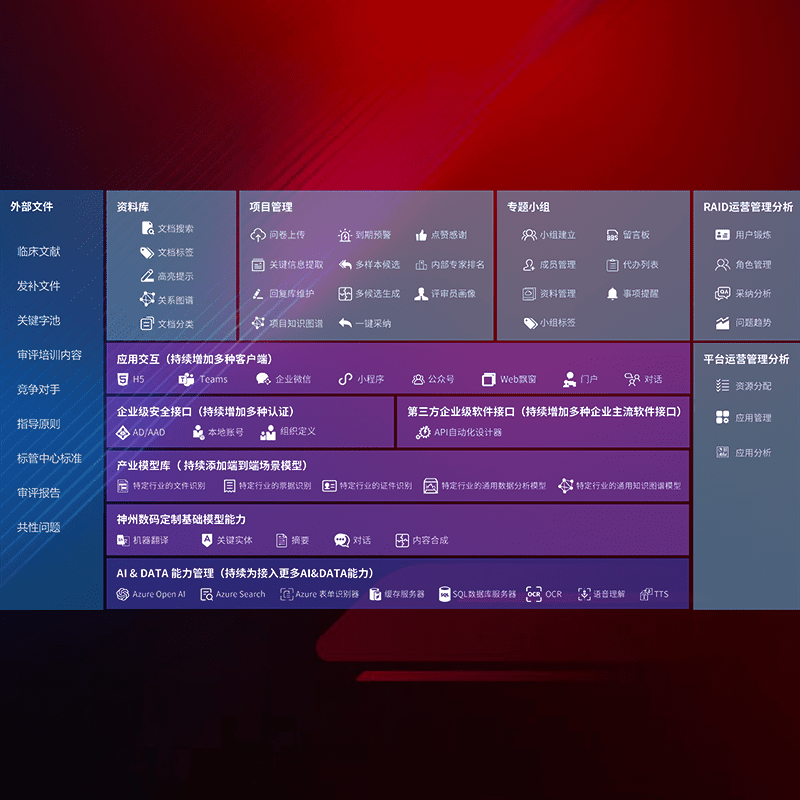医疗器械产品上市前,,,要熟悉严格与繁复评审标准,,,,整理分析监管机构指导文件中的海量信息。。。企业急需一个智能化解决方案,,,,提升知识管理效率,,,,提高评审通过率,,以提升其市场竞争力。。。